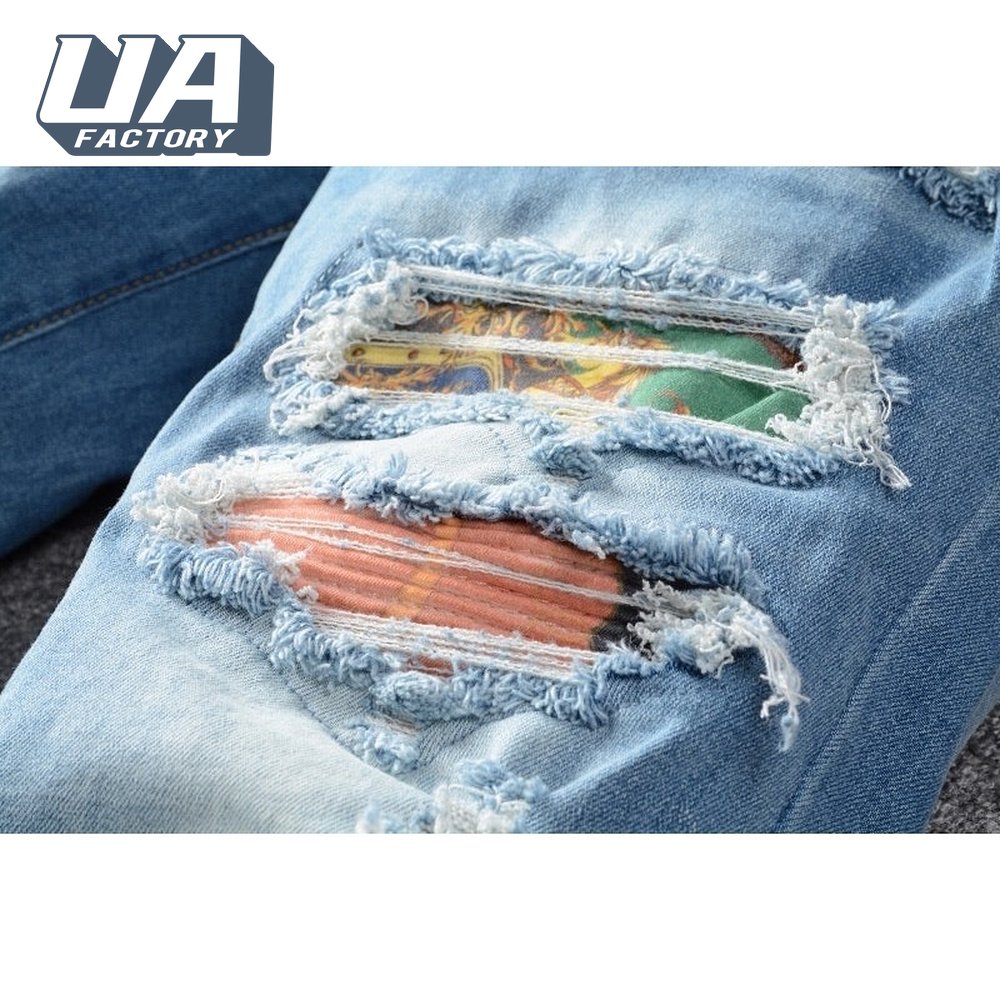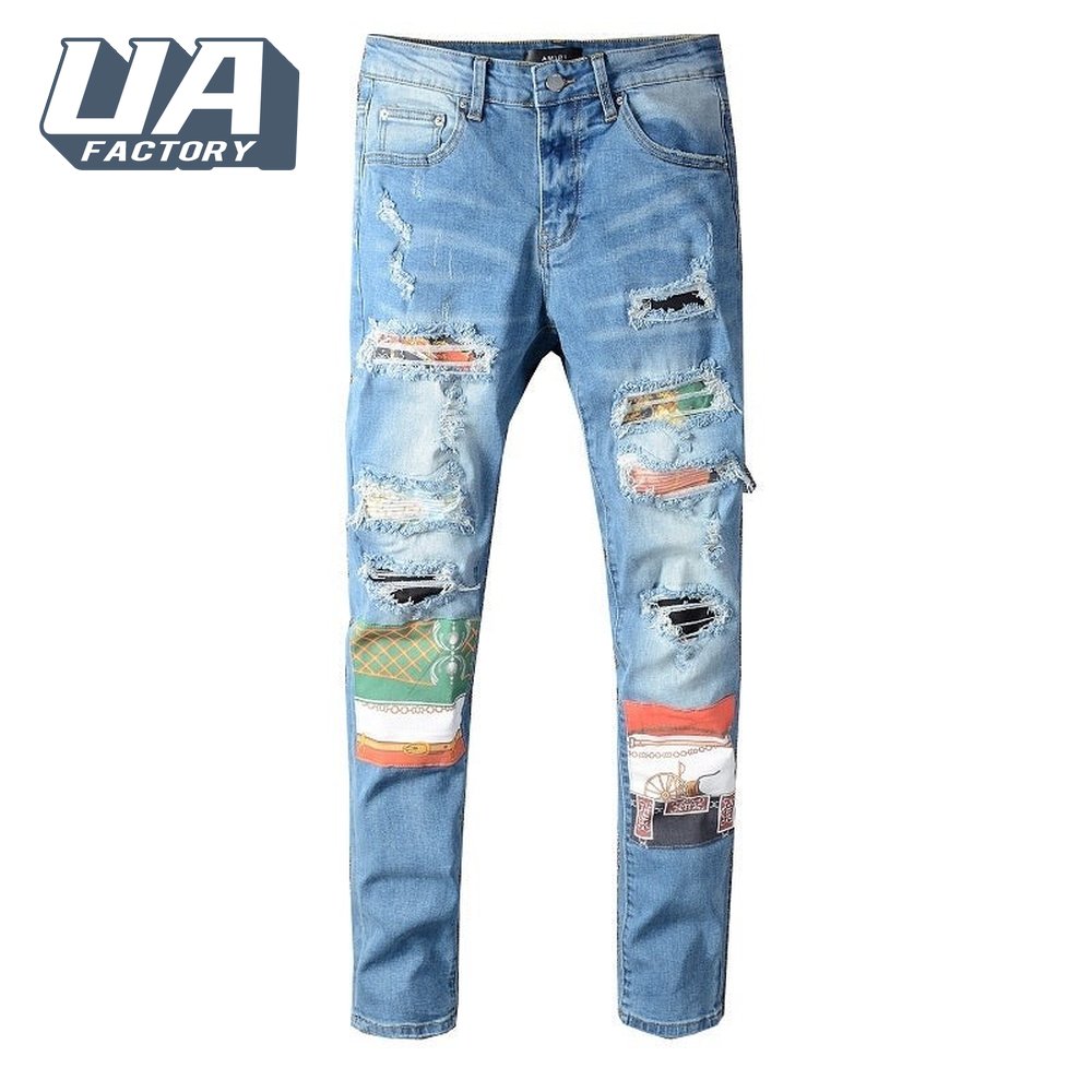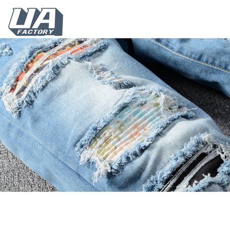Amiri Chain Design Rip Jeans Light Blue
