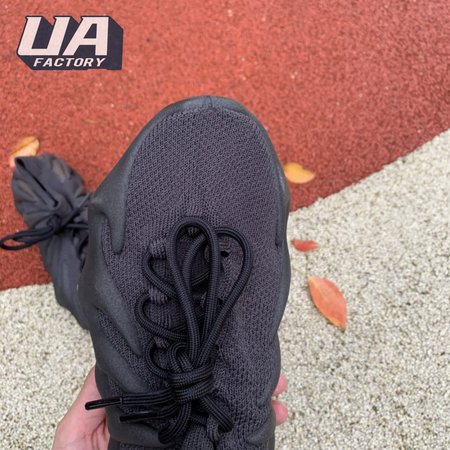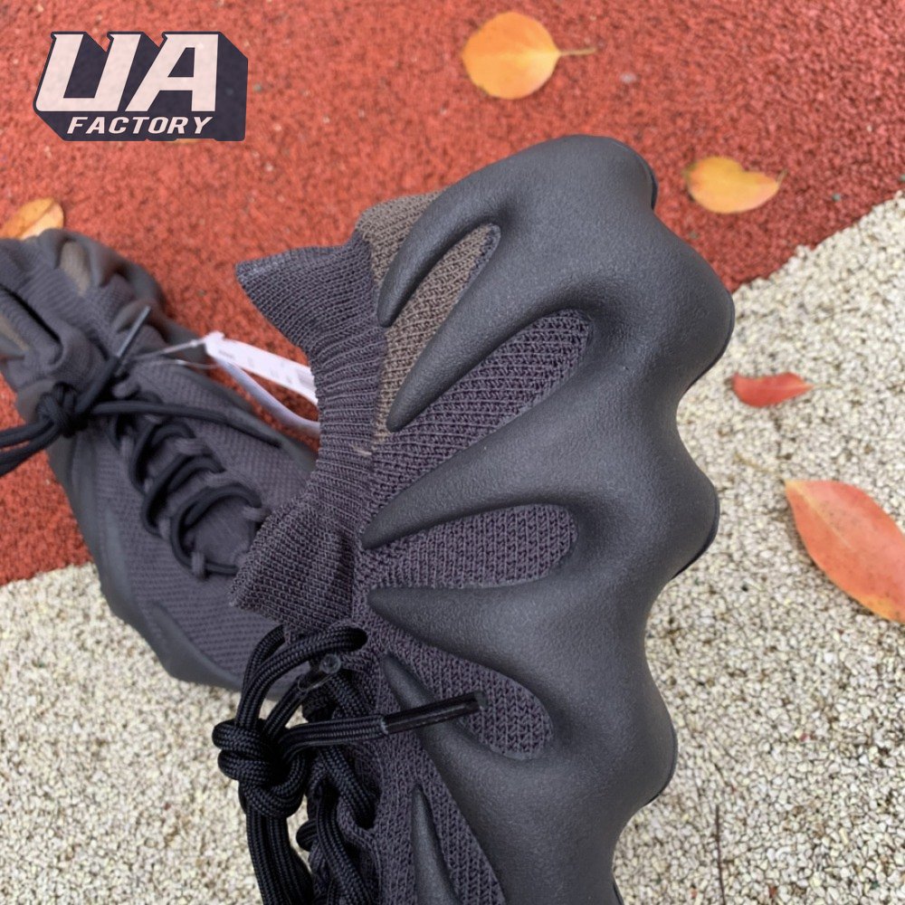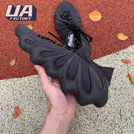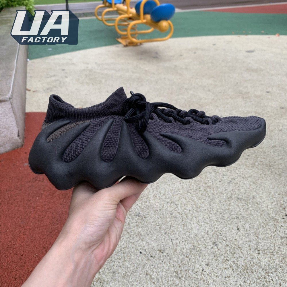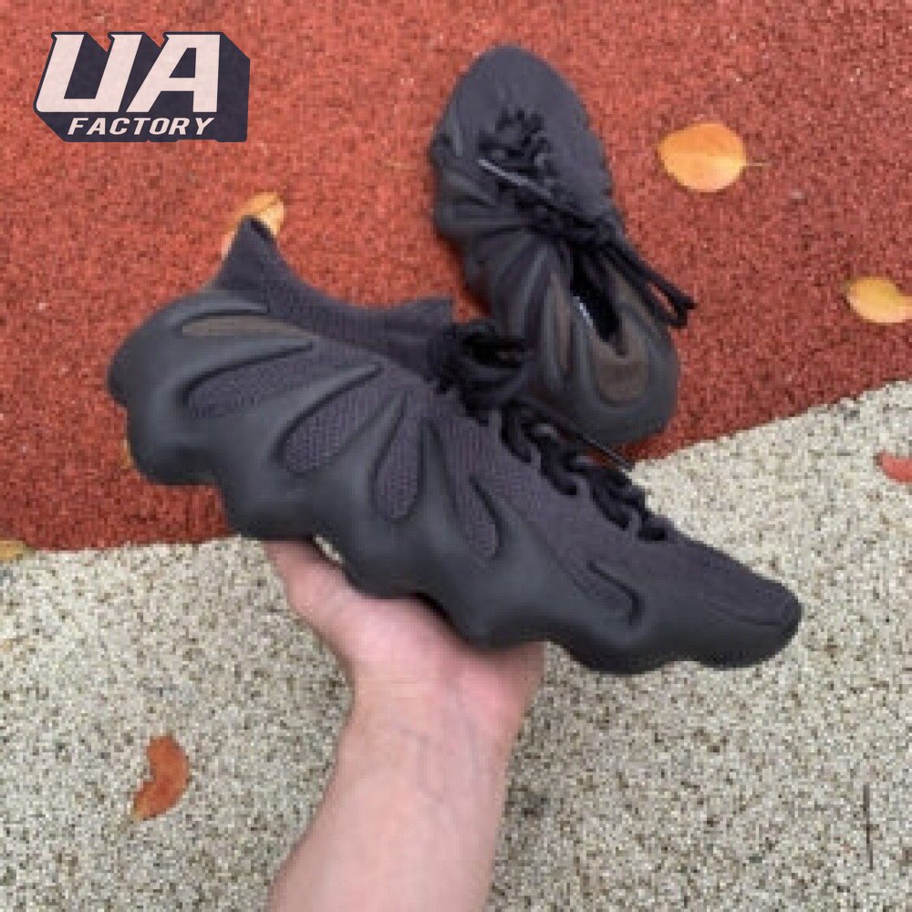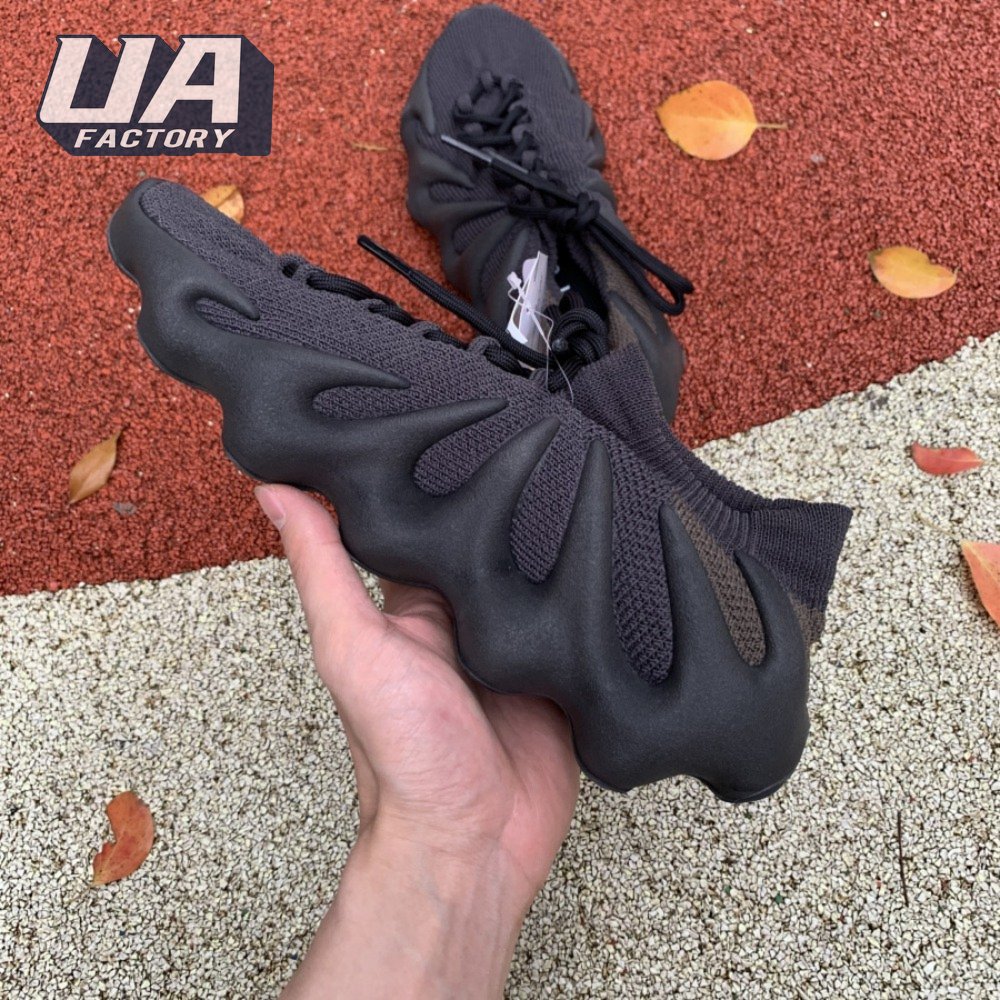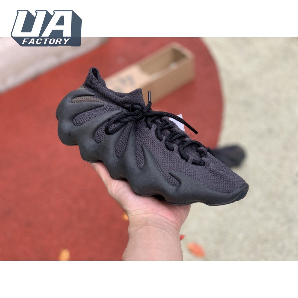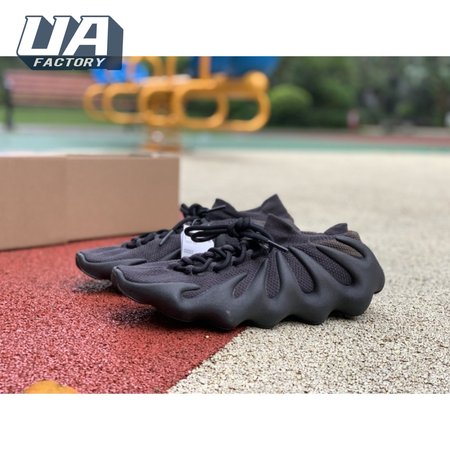The adidas Yeezy 450 "Dark Slate" delivers a blacked-out iteration of Kanye West"s boundary-pushing silhouette. Stripped of color and exterior branding, the knit upper is secured with an integrated lacing system and topped with an elastic, sock-like cuff. In lieu of a traditional midsole, the rubber outsole sprouts tapered appendages that wrap up the heel and side panels of the deconstructed build, providing support and enhanced durability within its grasp.