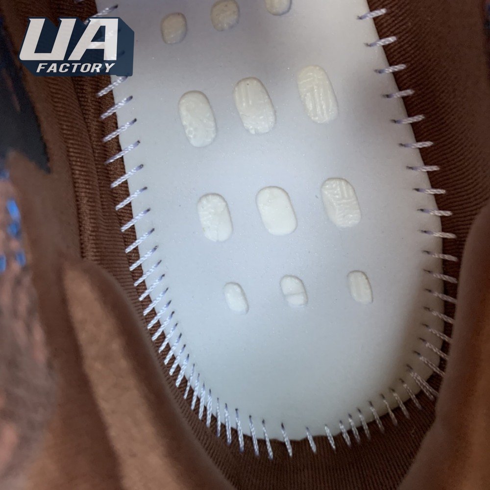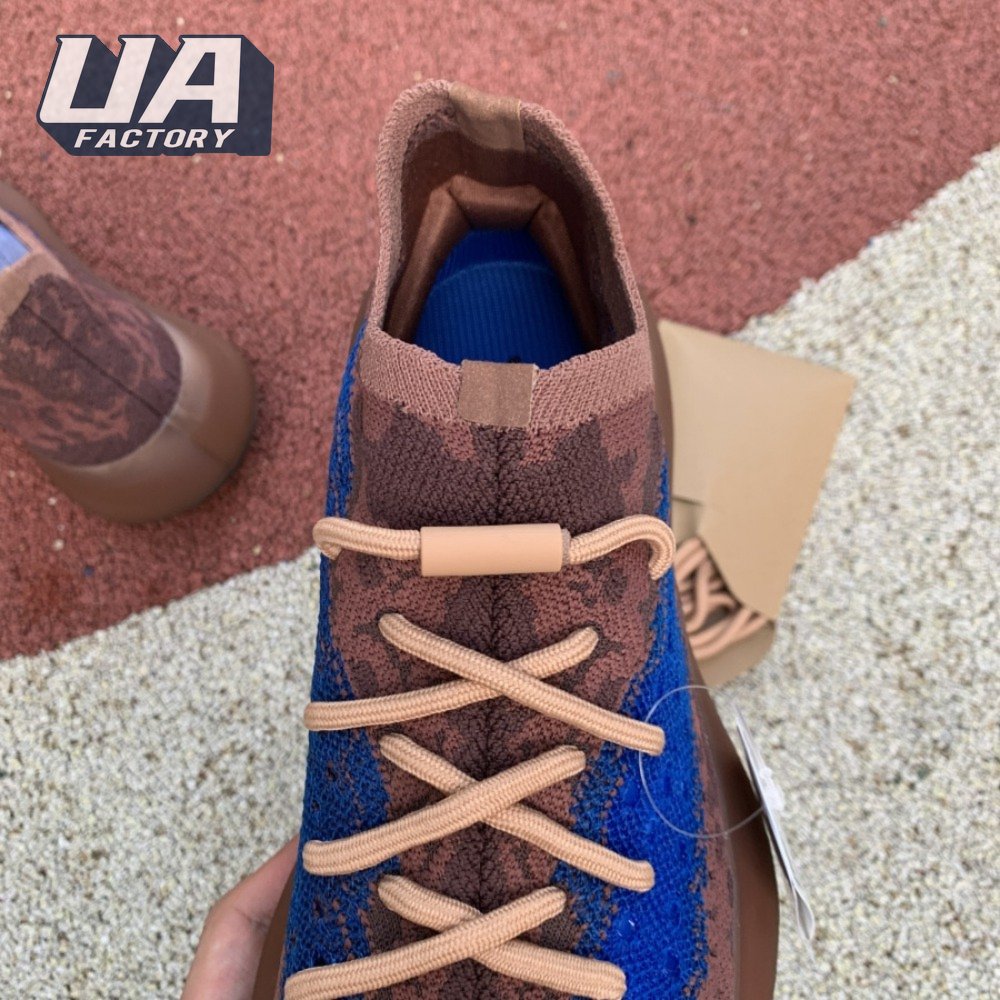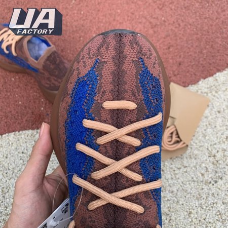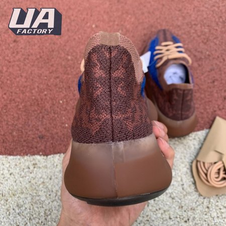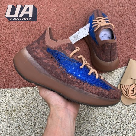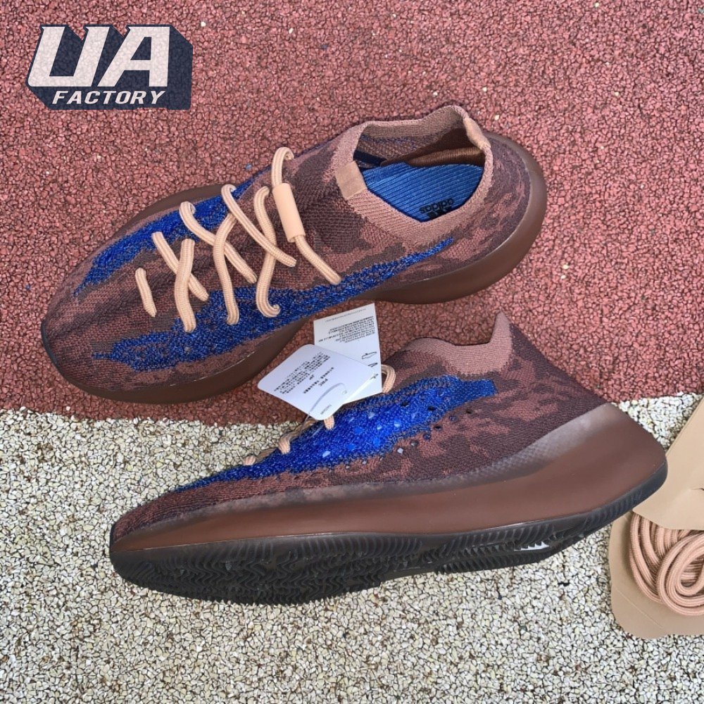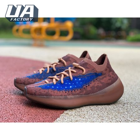 The adidas Yeezy Boost 380 "Azure Non-Reflective" utilizes a re-engineered Primeknit upper finished in muddy brown tones. A contrasting splash of royal blue distinguishes the translucent monofilament window that"s woven into the lateral side of the sock-like construction. Responsive cushioning comes courtesy of a full-length Boost midsole, featuring an elevated heel for a fluid transition. Underfoot, a herringbone rubber outsole provides grippy traction. The Yeezy Boost 380 "Azure Non-Reflective" is a regional exclusive and only launched in Europe.