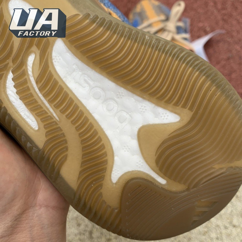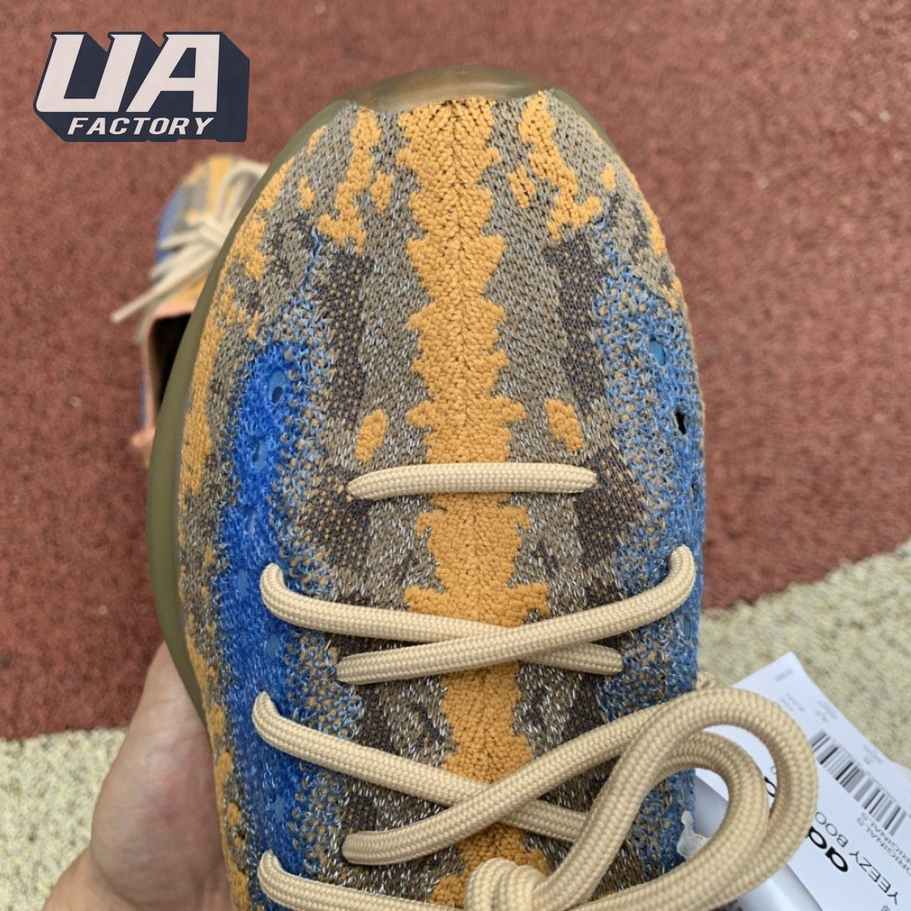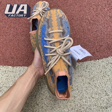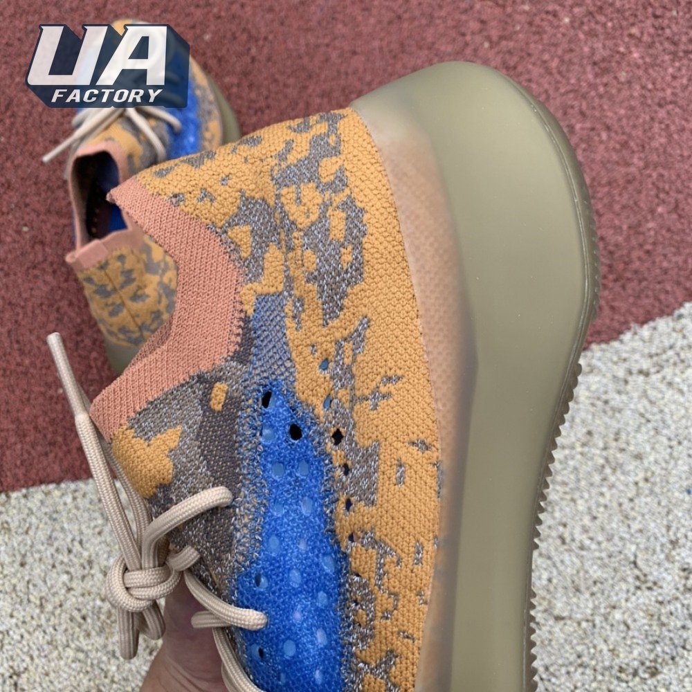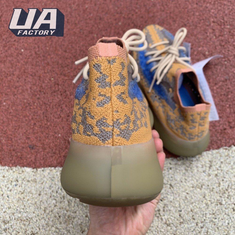 The adidas Yeezy Boost 380 "Blue Oat Reflective" makes use of a Primeknit upper in a blend of orange and brown hues, resulting in a unique camo-like pattern that"s enlivened with a contrasting pop of blue on the translucent monofilament window. Reflective thread is woven into the sock-like build, offering added visibility in low-light conditions. The responsive Boost midsole is encased in semi-translucent rubber and supported by a herringbone rubber outsole.