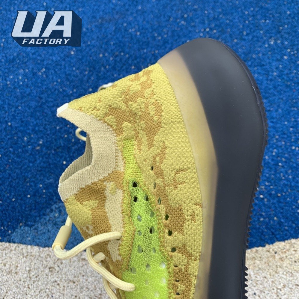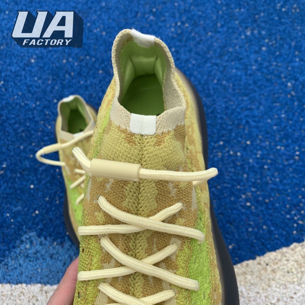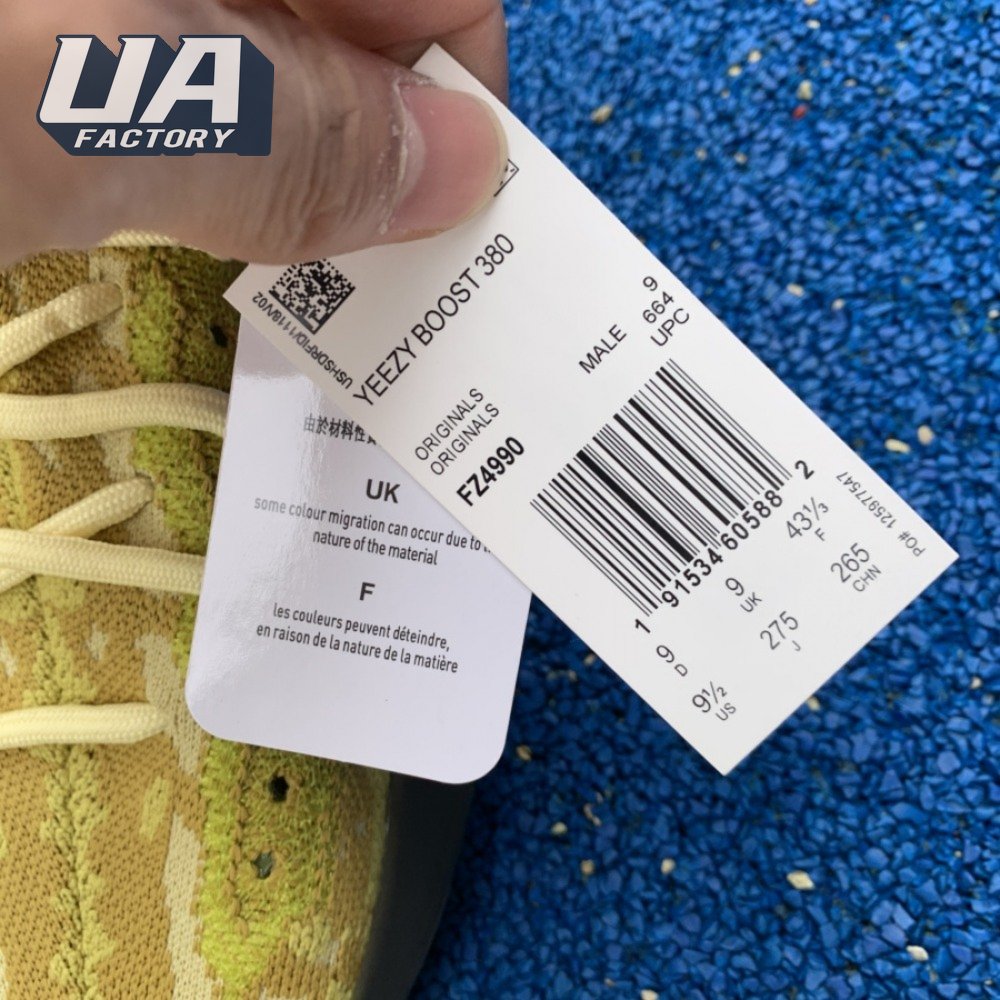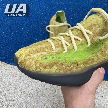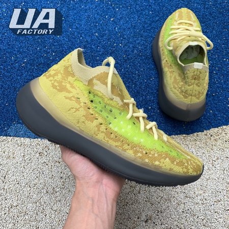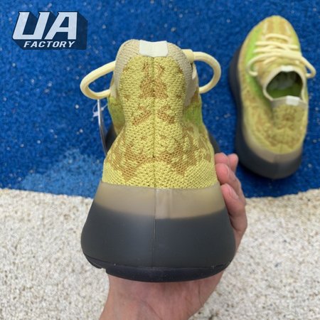 The adidas Yeezy Boost 380 "Hylte" features an eye-catching color scheme that strays from the signature Yeezy palette, which traditionally leans heavily on muted earth tones. A splash of fluorescent green is applied to the the sneaker"s translucent monofilament window, contrasted by the camo-like tan and yellow composition that makes up the Primeknit upper. Standard Boost cushioning is enveloped in grey rubber and reinforced with a herringbone-traction outsole. The Yeezy Boost 380 "Hylte" is a regional exclusive and only launched in North America and Latin America.