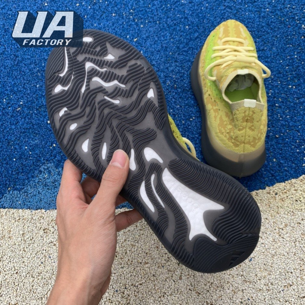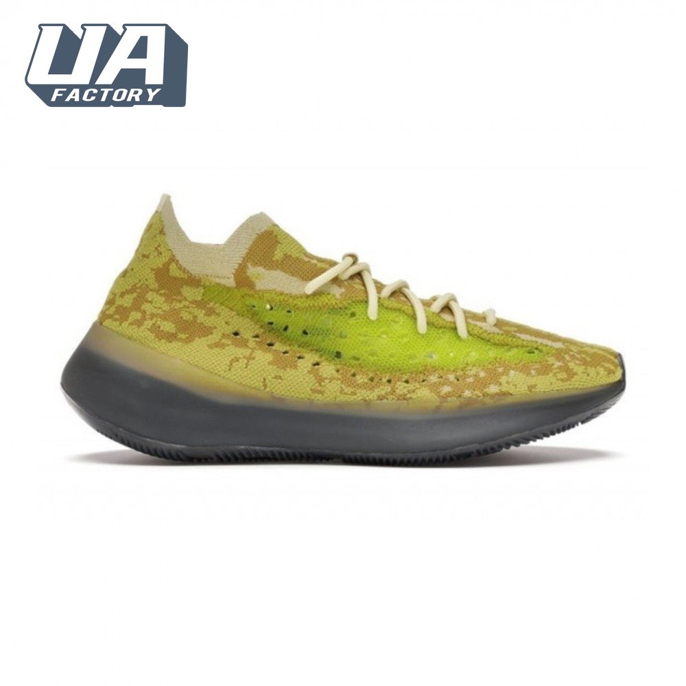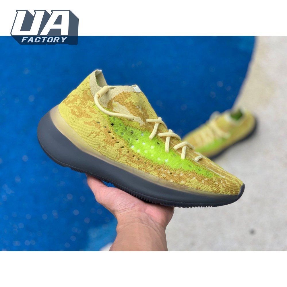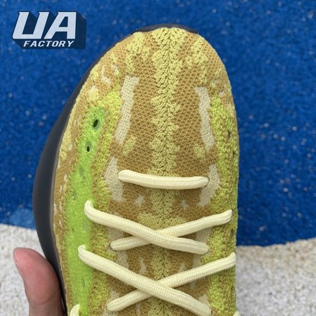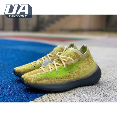 The adidas Yeezy Boost 380 "Hylte" features an eye-catching color scheme that strays from the signature Yeezy palette, which traditionally leans heavily on muted earth tones. A splash of fluorescent green is applied to the the sneaker"s translucent monofilament window, contrasted by the camo-like tan and yellow composition that makes up the Primeknit upper. Standard Boost cushioning is enveloped in grey rubber and reinforced with a herringbone-traction outsole. The Yeezy Boost 380 "Hylte" is a regional exclusive and only launched in North America and Latin America.