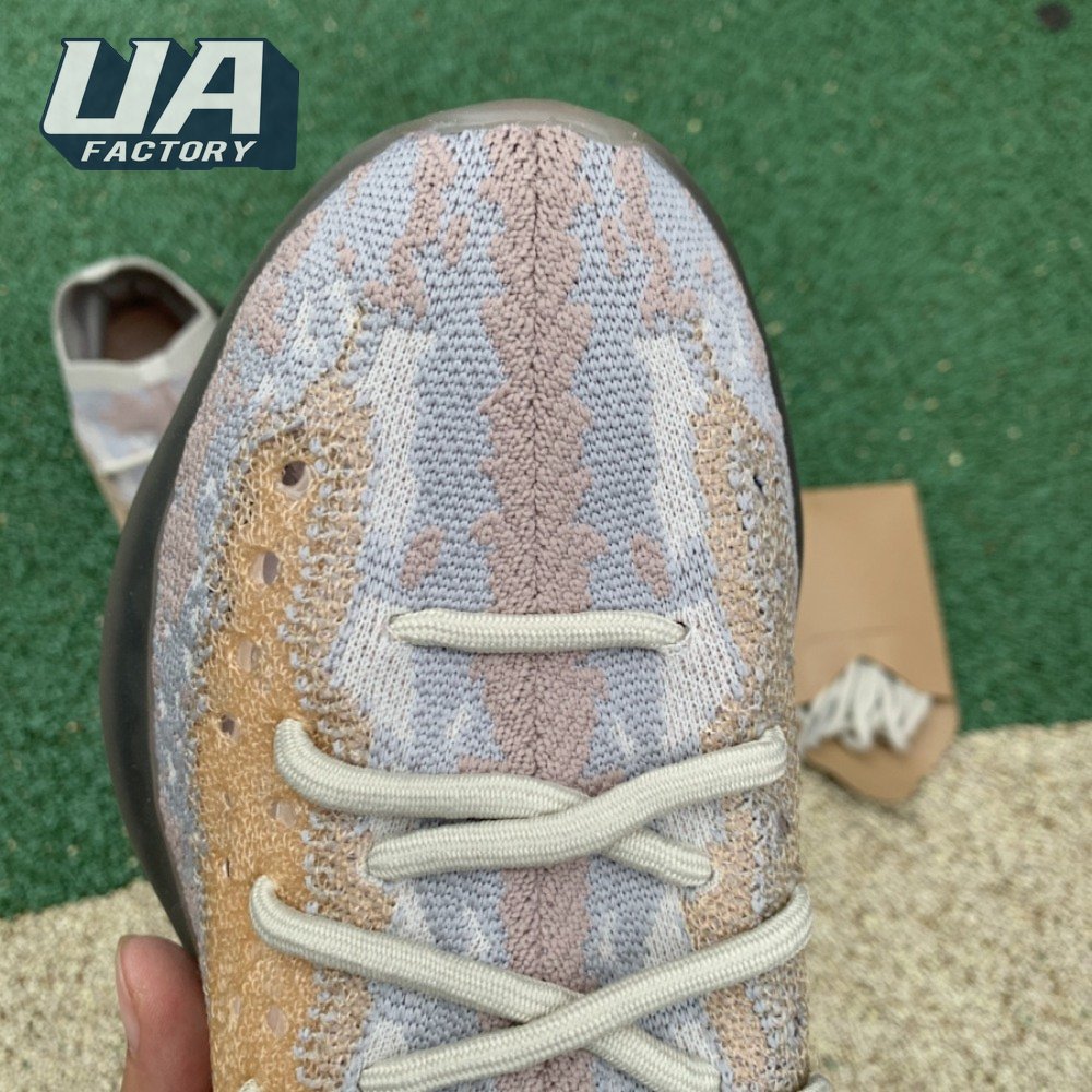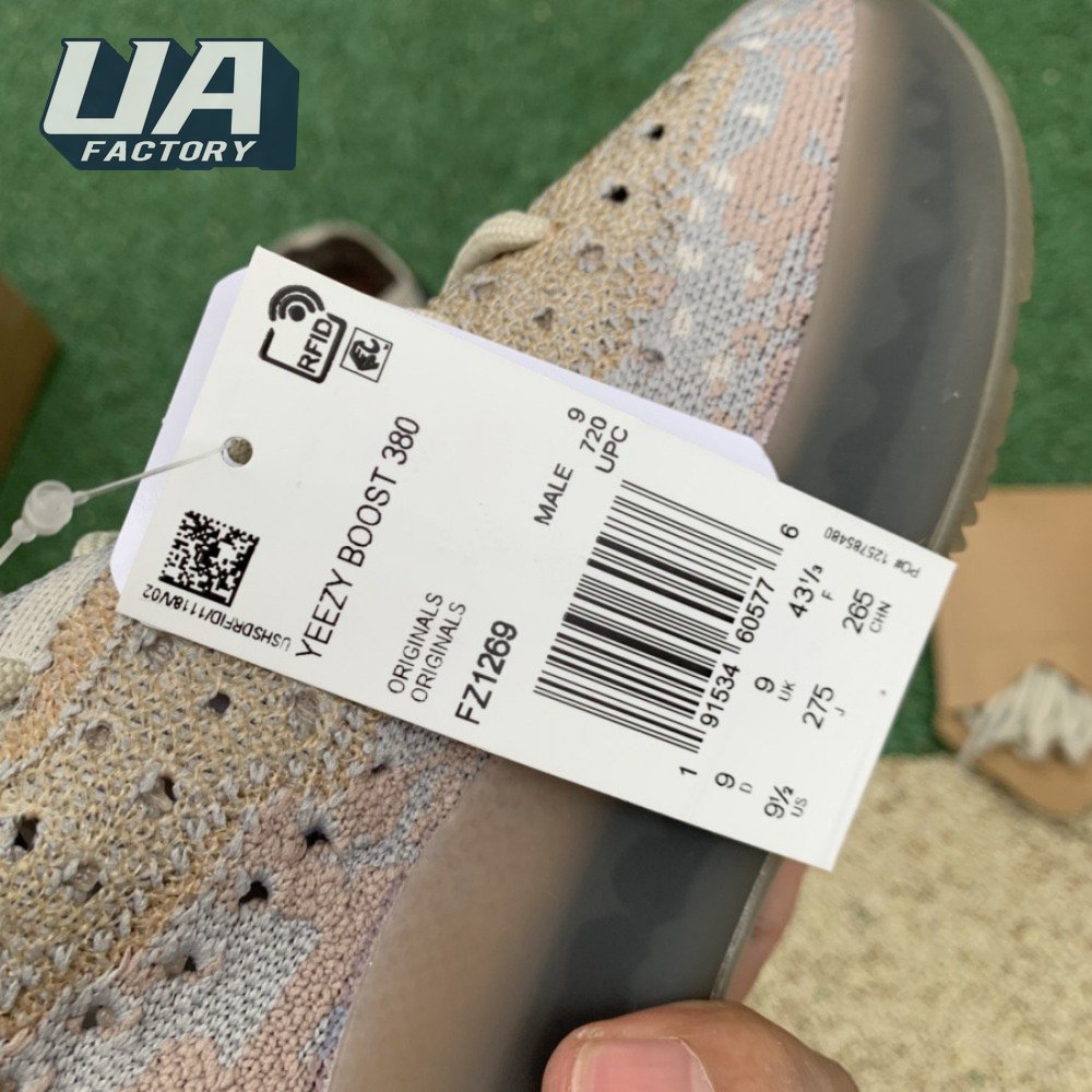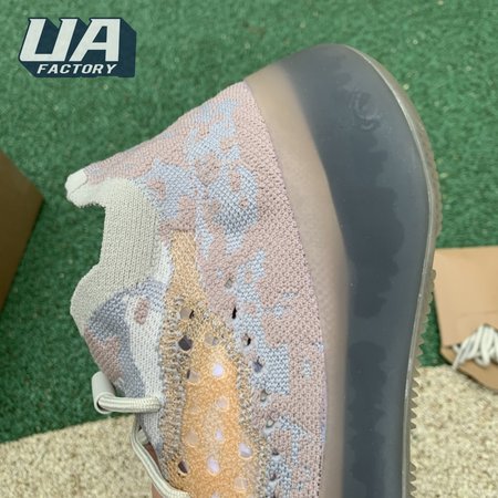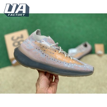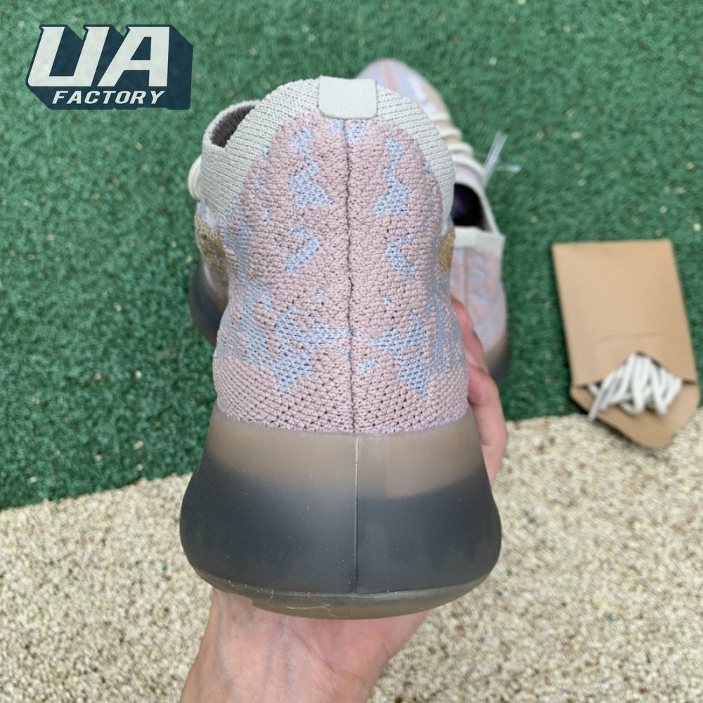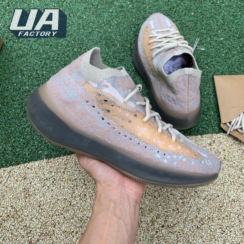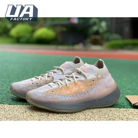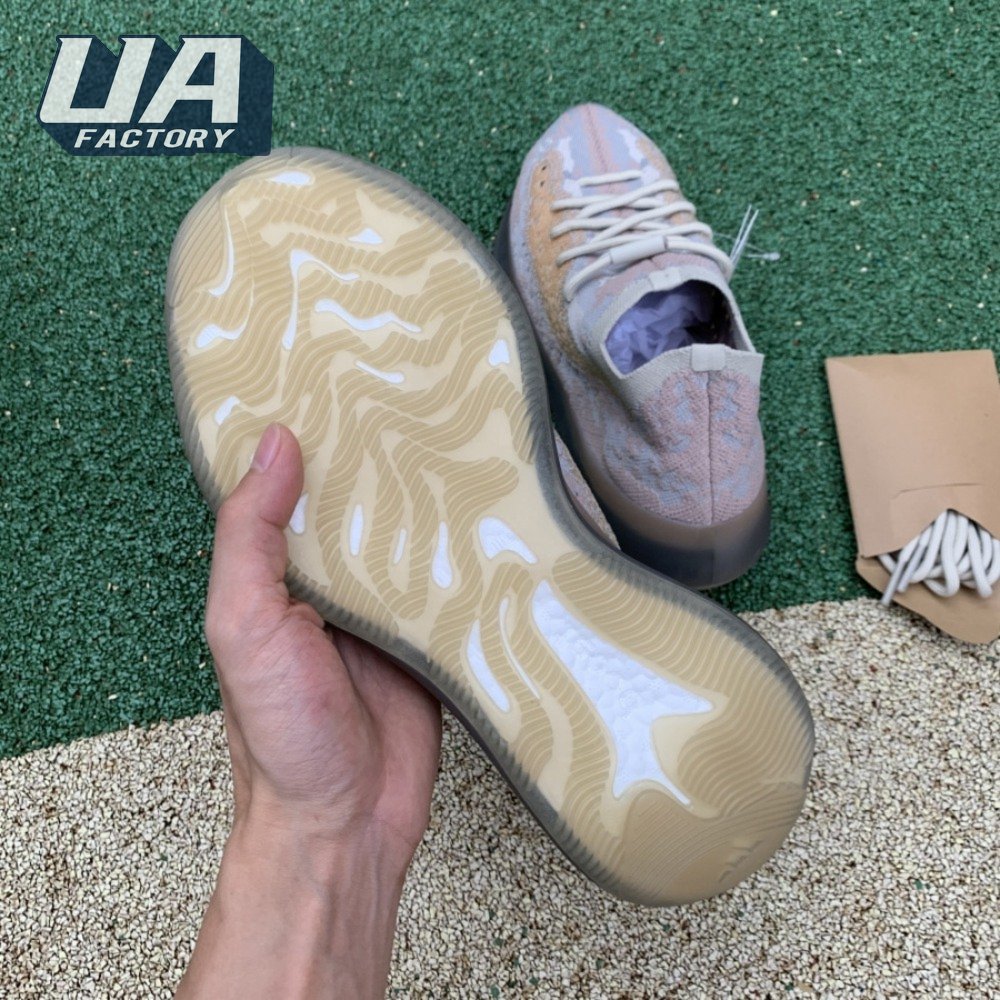 The Yeezy Boost 380 "Pepper Non-Reflective" applies a neutral color scheme to its breathable Primeknit upper, featuring a snug, sock-like fit that allows for a secure fit with or without laces. A muddy tan finish distinguishes the sneaker"s translucent monofilament window, allowing the signature detail to stand out against a knit backdrop in lighter grey and Off-White tones. A full-length Boost midsole supports the lightweight build, equipped with a raised heel for a smooth ride.