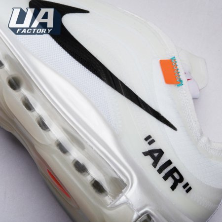 Released as part of "The Ten" collection from November 2017, Virgil Abloh"s take on the Air Max 97 focuses on the shoe"s upper. The retro runner"s translucent build serves to tone down the visual impact of its signature wavy lines, so that the eye is drawn to the overall shape instead. "AIR" stamped on the lateral side serves as a reminder of the technical innovation inherent in the '97 ?C the first Nike silhouette to feature a full-length Max Air unit.