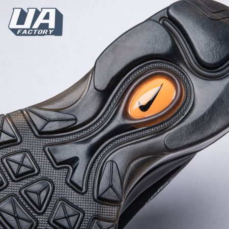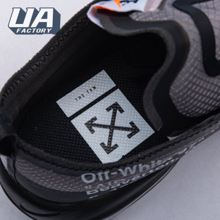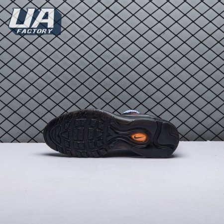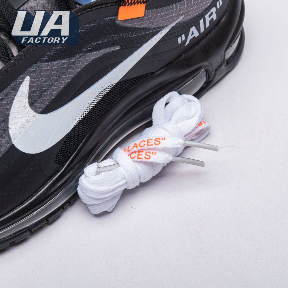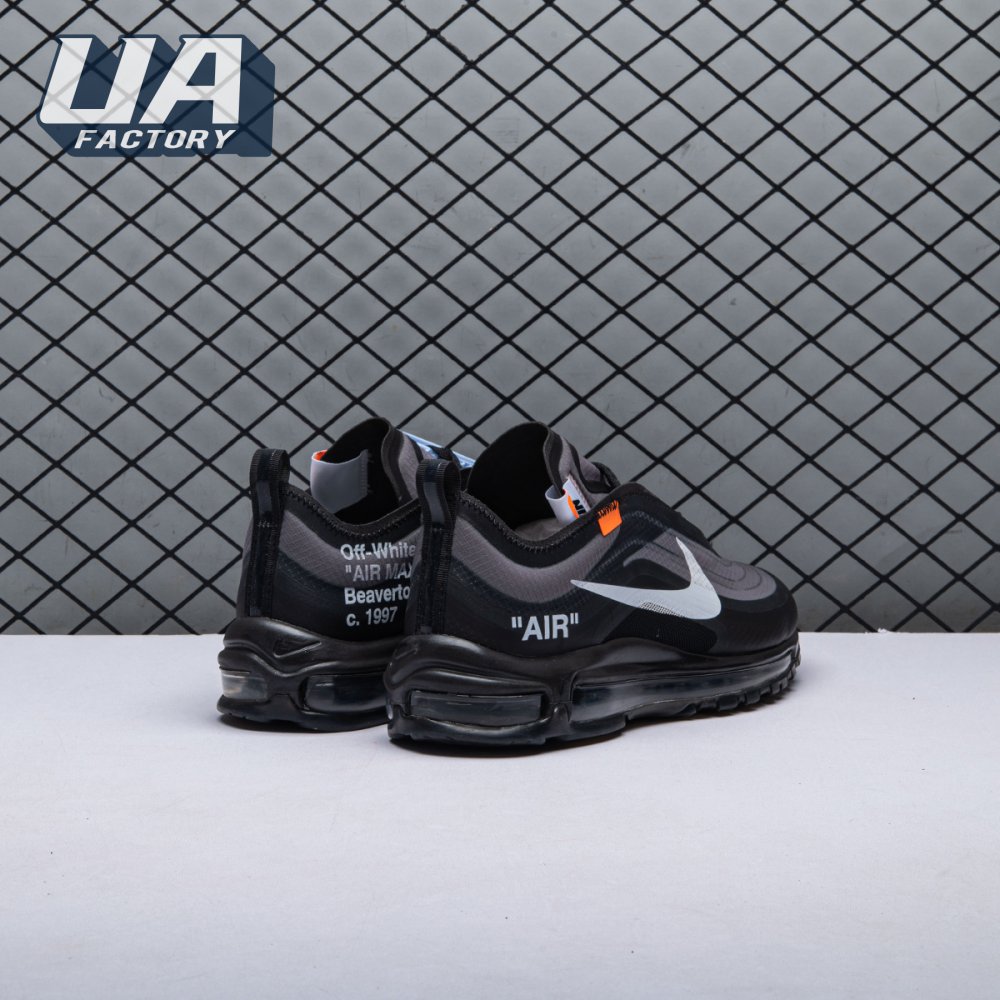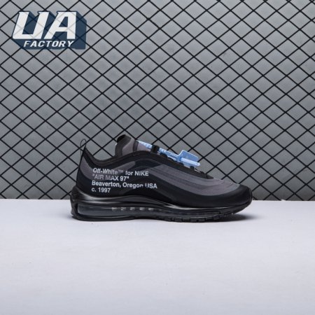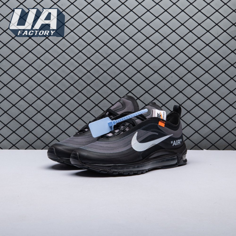 Debuting on the runway at Paris Fashion Week in June 2018, the Off-White x Air Max 97 in black sees Virgil Abloh outfit the retro runner with a translucent textile upper. A white Swoosh and "AIR" lettering adorn the lateral side, while the quarter panel on the medial side is printed with more lines of Virgil"s signature text. The shoe"s reconstructed look is finished with a woven Nike tongue tag pushed to the side.