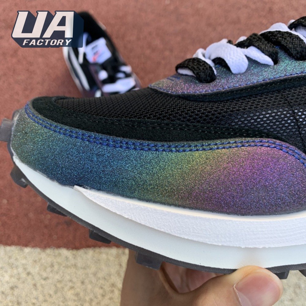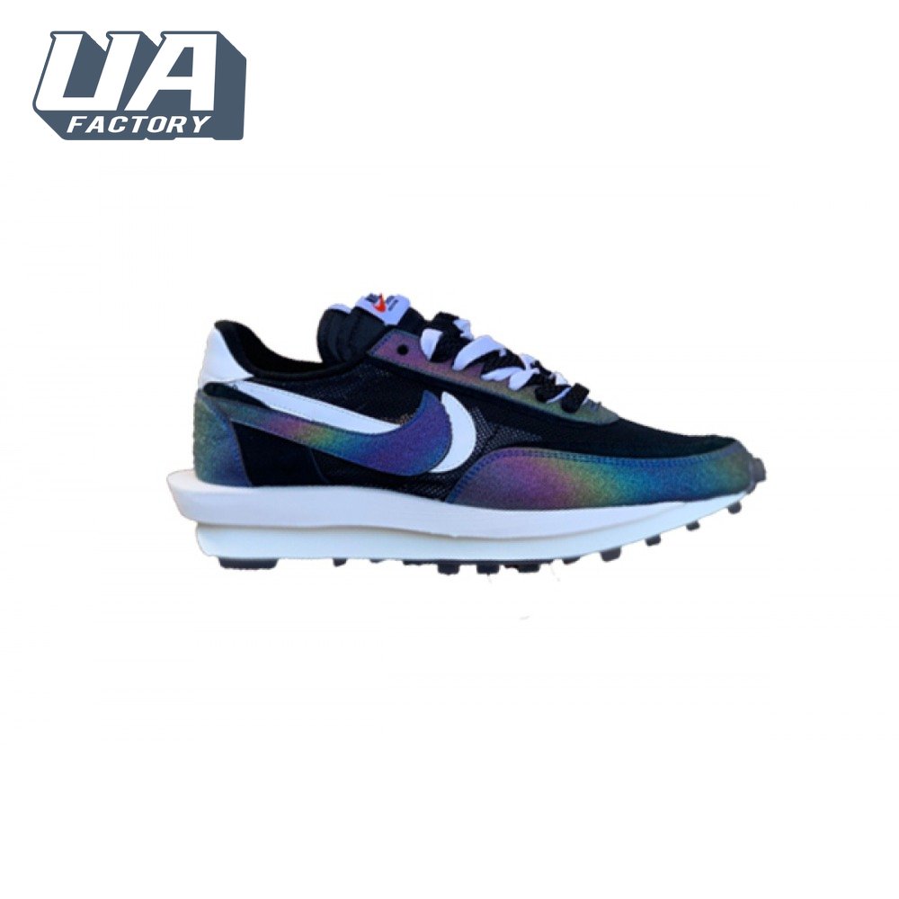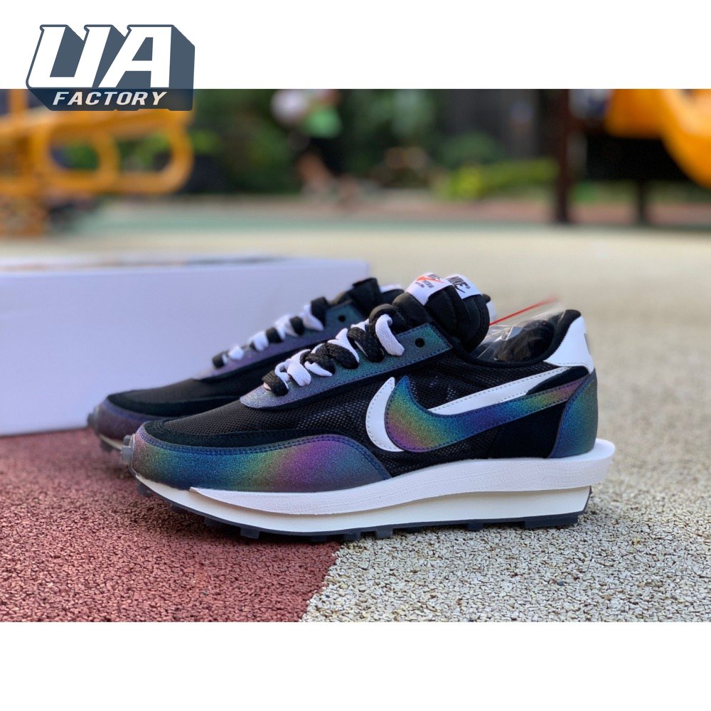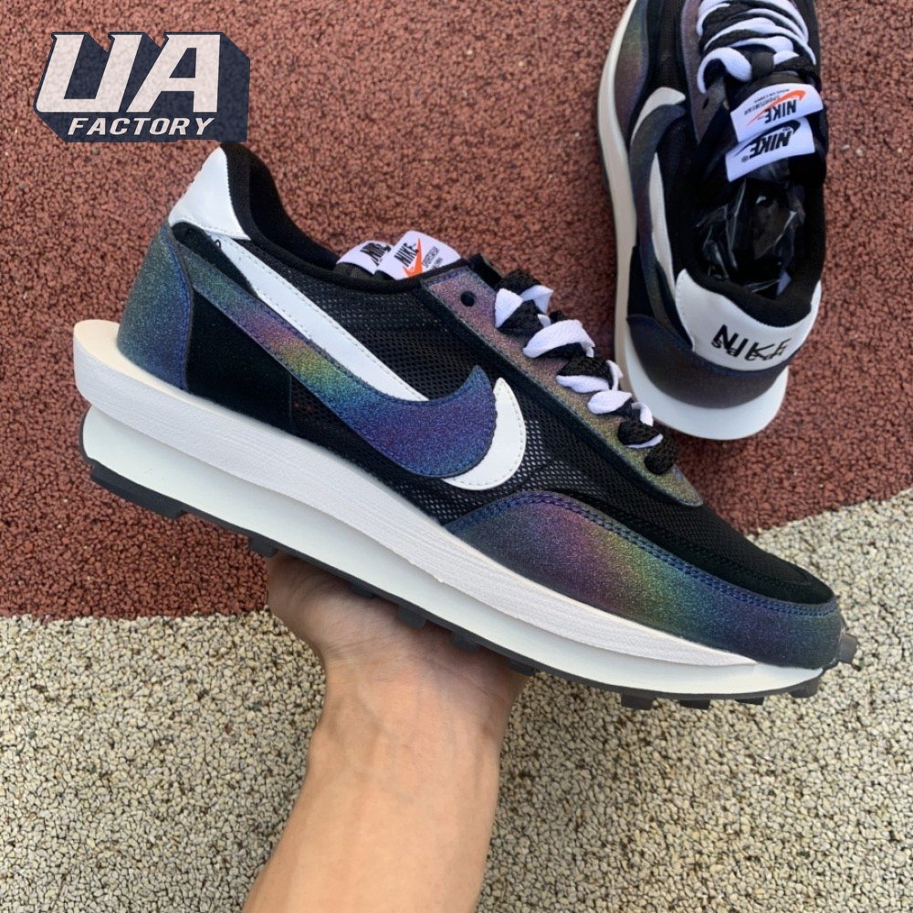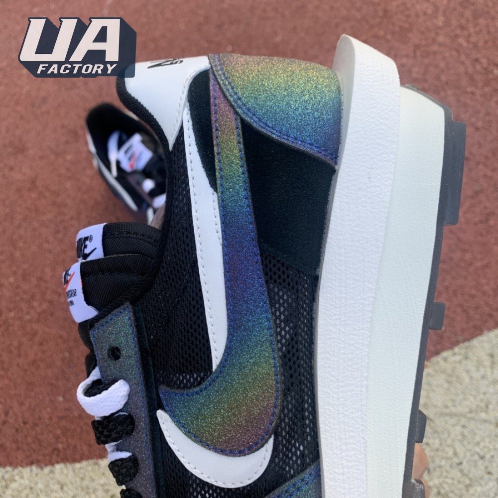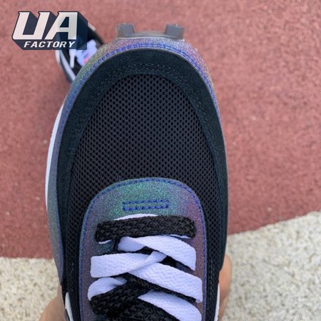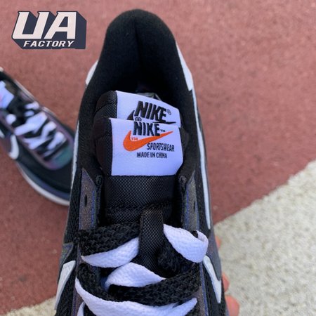 The Off-White x Blazer Studio Mid "Queen" was designed by Virgil Abloh as part of a larger collection celebrating Serena Williams" appearance at the 2018 U.S. Open. The mid-top sports a Wolf Grey upper built with a combination of leather, suede and translucent textile, accented with an oversized Swoosh in black. The rubber midsole features gradient coloring that transitions from pink to purple to grey. Signature Off-White text adorns the side panel on the shoe"s medial side, and "QUEEN OF QUEENS, NY" is stamped on the volt zip-tie.