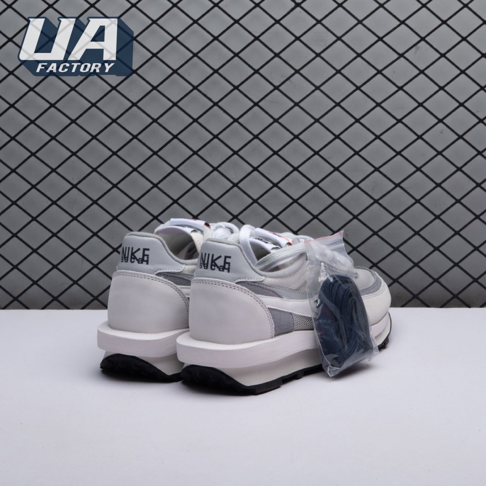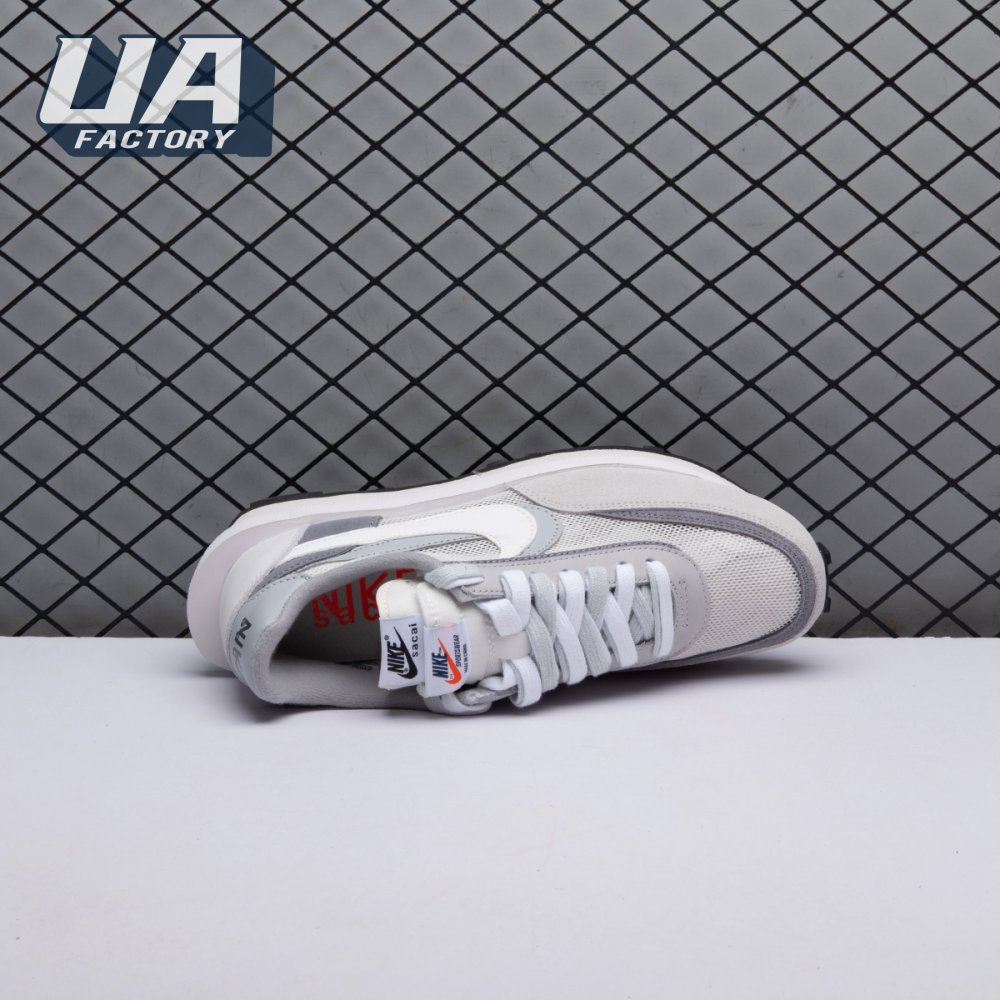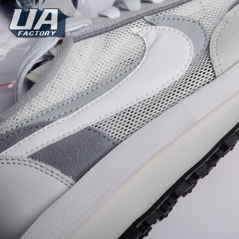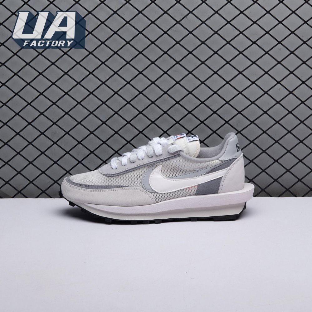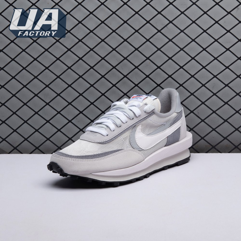 The Sacai x LDWaffle is a unique collaboration by the Japanese high-fashion label and Nike. A hybrid model that layers two vintage running shoes, this 'Summit White' iteration"emerged in September 2019"is designed with a mesh base, double suede panels and coupled Swooshes. The concept is extended to twin tongues and optional double laces. Following the same formula, two sole units are stacked on top of one another.