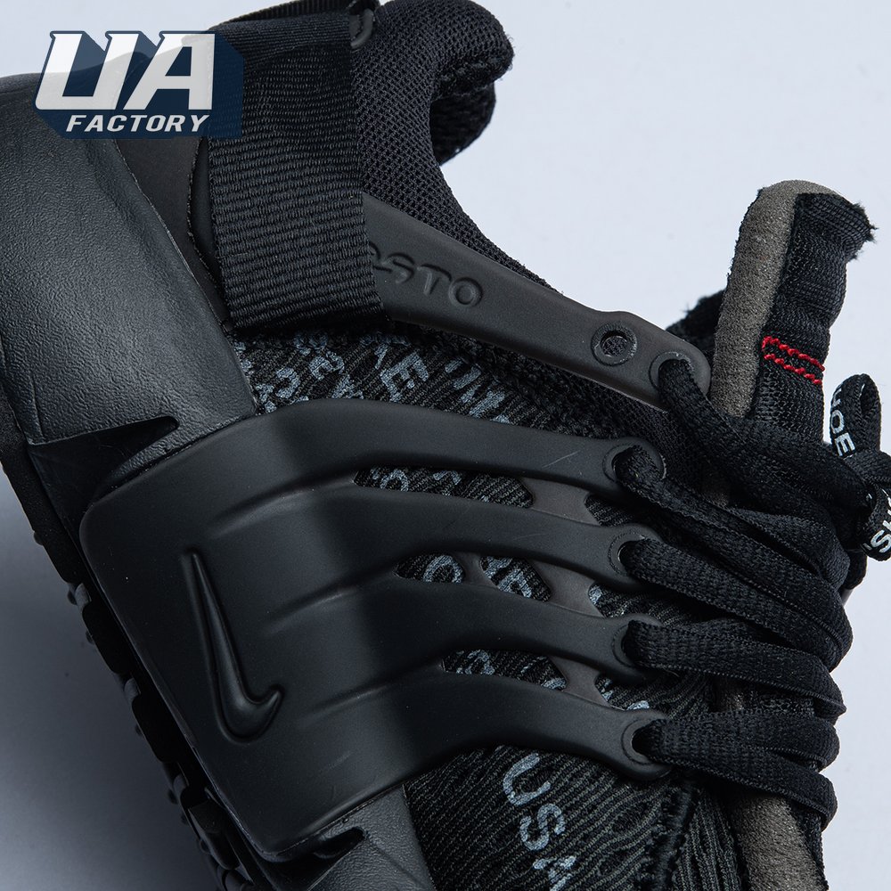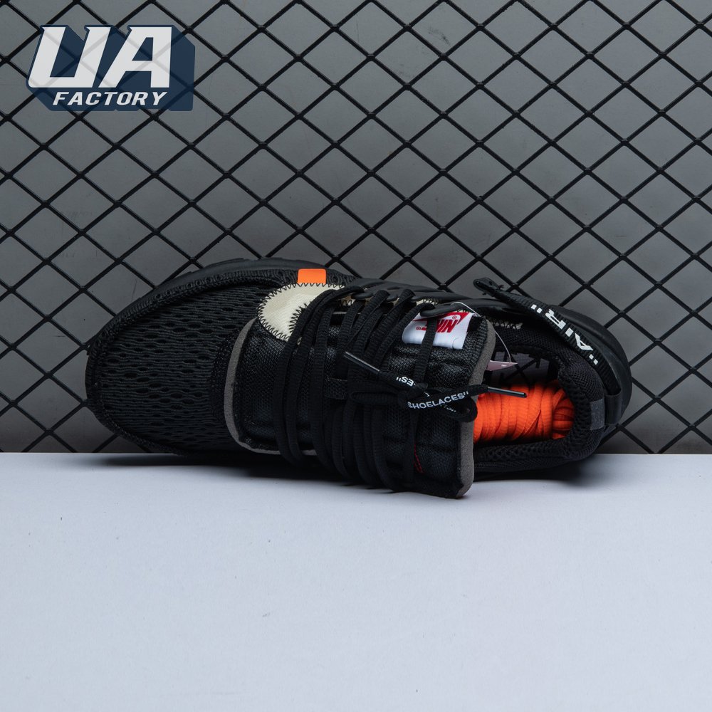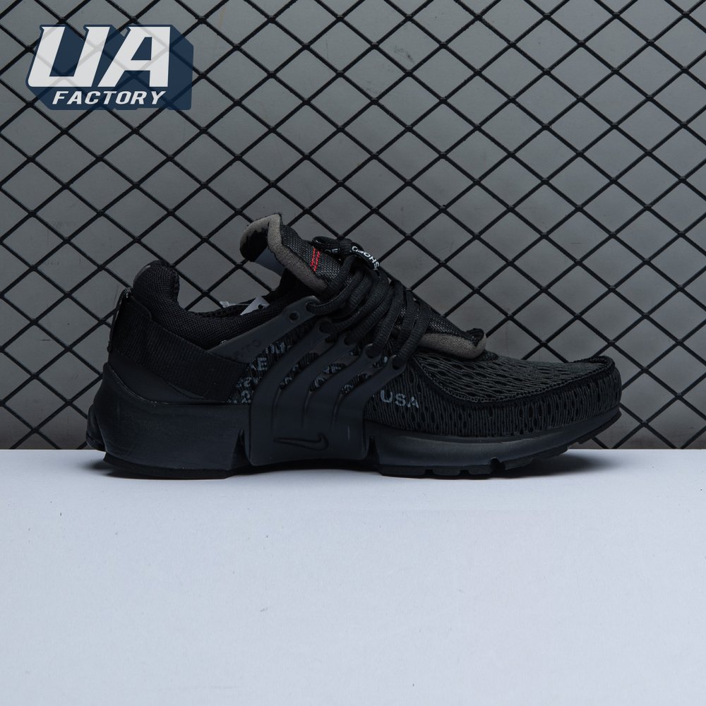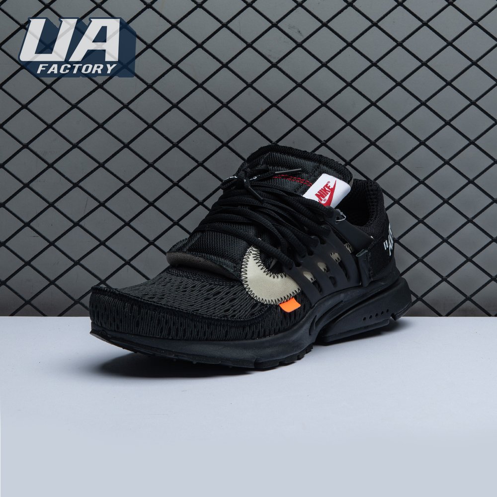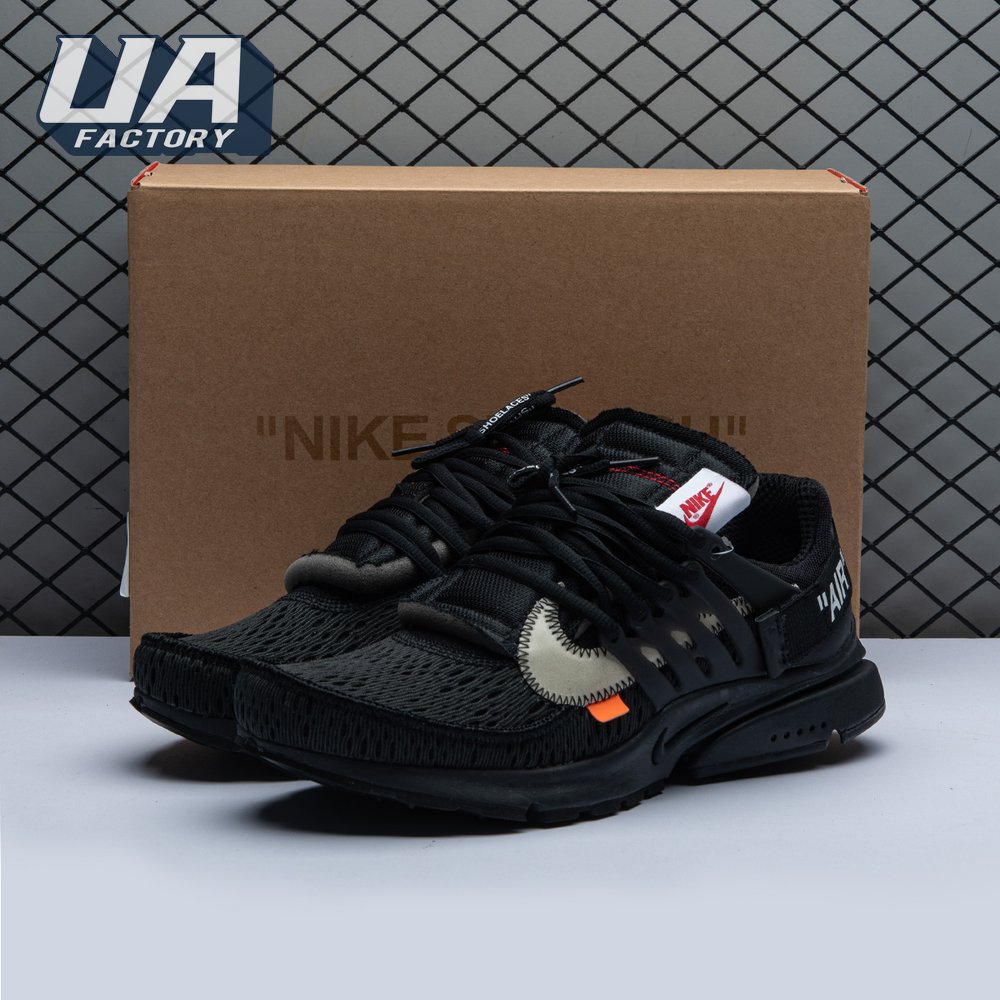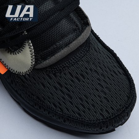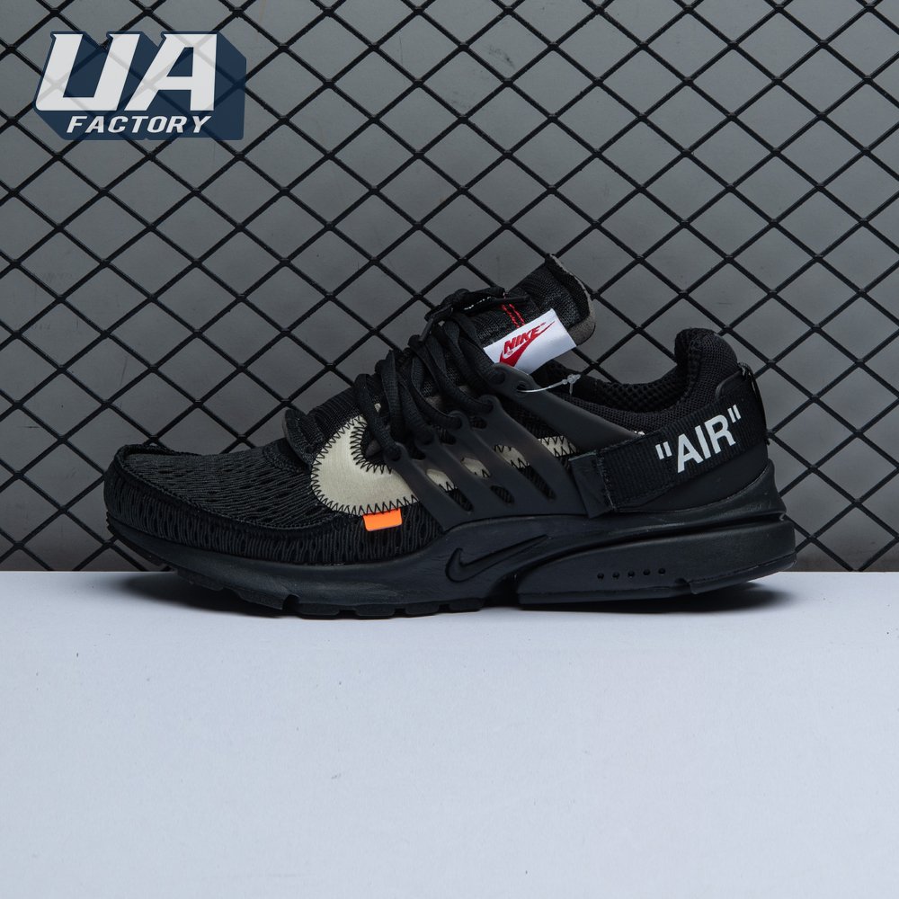 This monochromatic take on the Air Presto is the second time Virgil Abloh and Nike collaborated on this iconic silhouette. The July 2018 iteration came a few mere months after it"s two-tone predecessor made it"s debut as part of Abloh and Nike"s "The Ten" Collection. This pair showcases an all-black finish, accented with unique touches including a plastic zip tie, white Swoosh with conspicuous zig-zag stitching, and lines of text on the medial quarter panel that allude to the shoe"s Beaverton origins.
