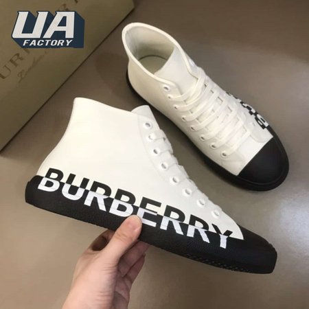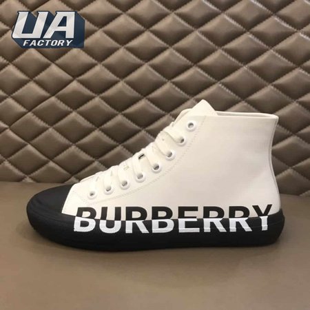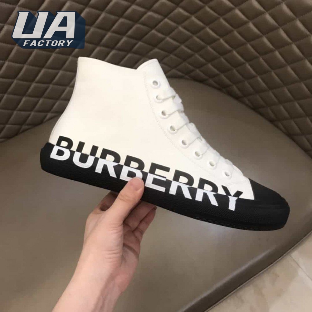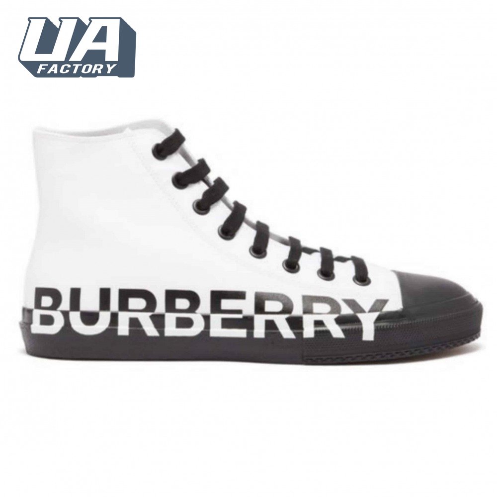 BURBERRY LOGO PRINT GABARDINE HIGH-TOP SNEAKERS - BBR32