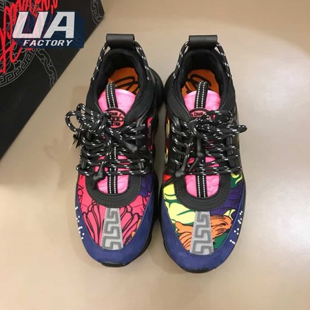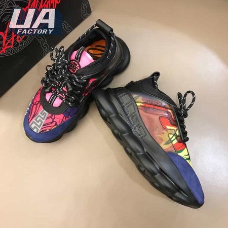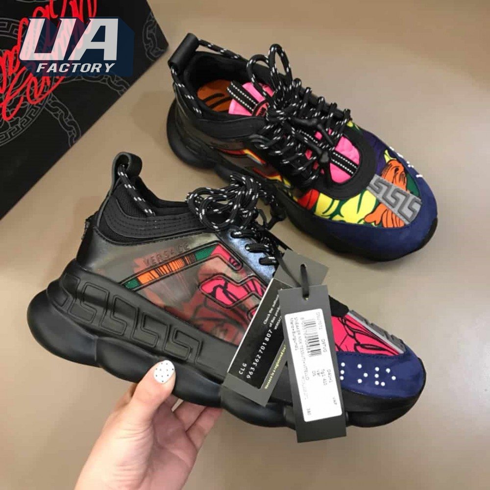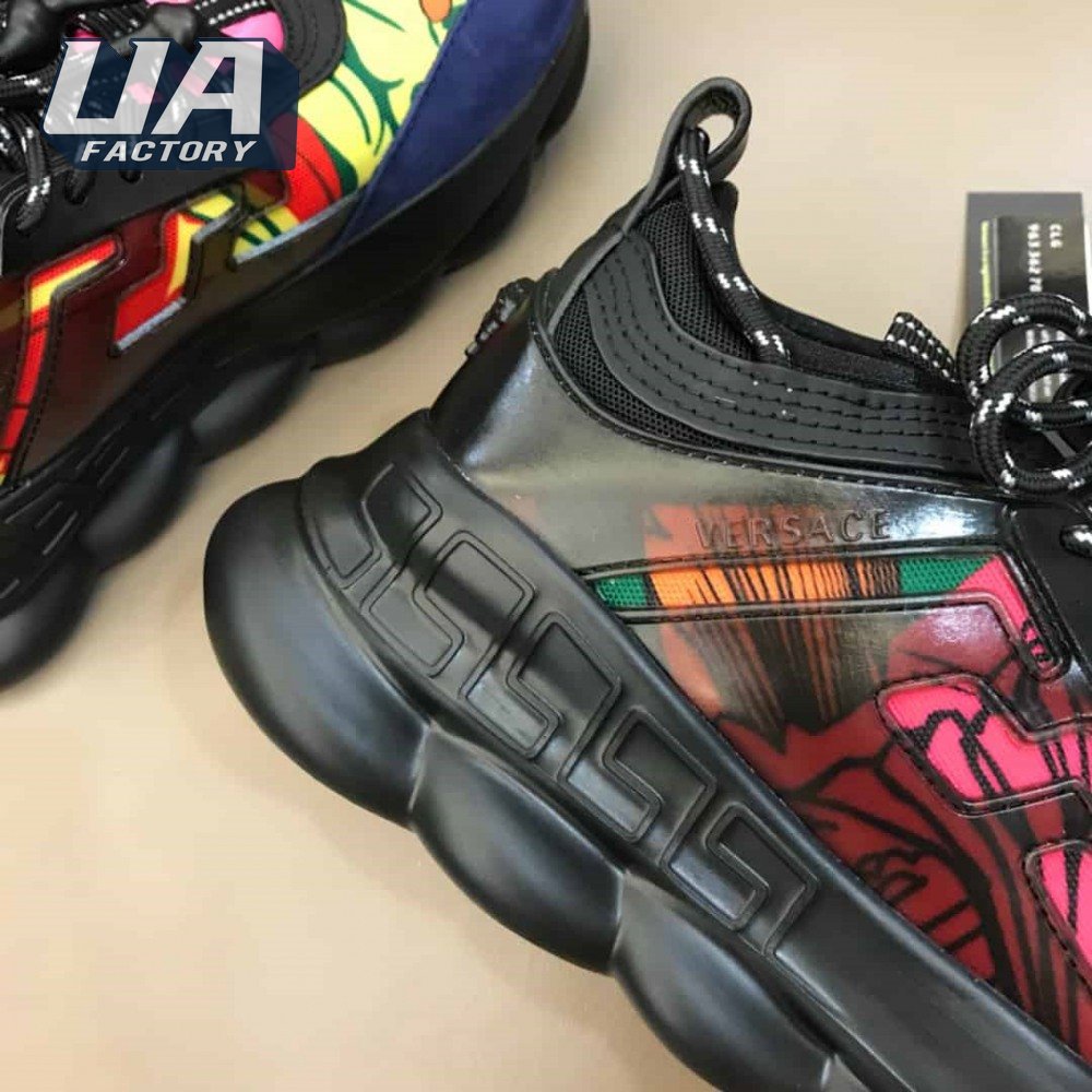 VERSACE BLACK AND MULTICOLOURED CHAIN REACTION SNEAKERS - VS8