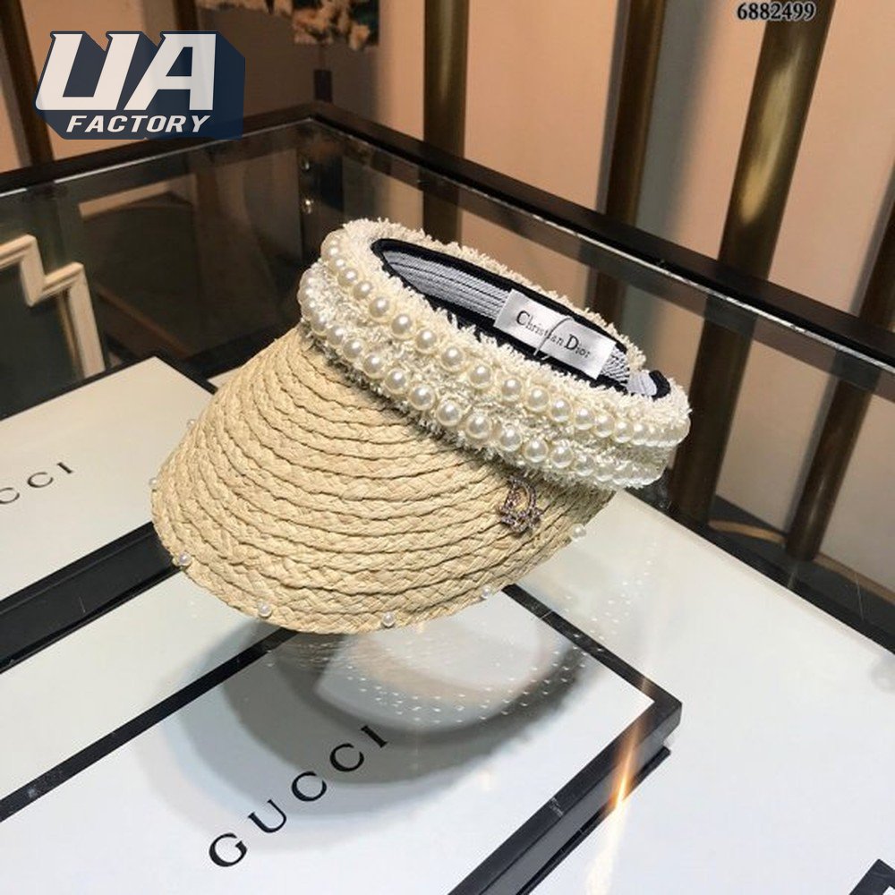 Best Christian Dior Natural raffia splicing sun Empty top hat