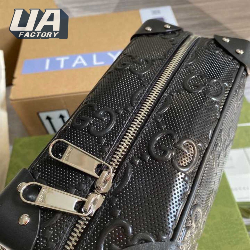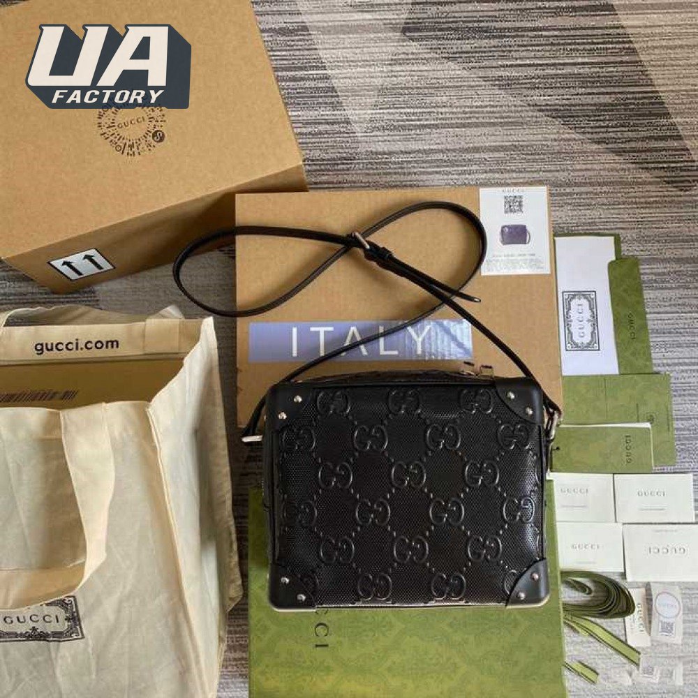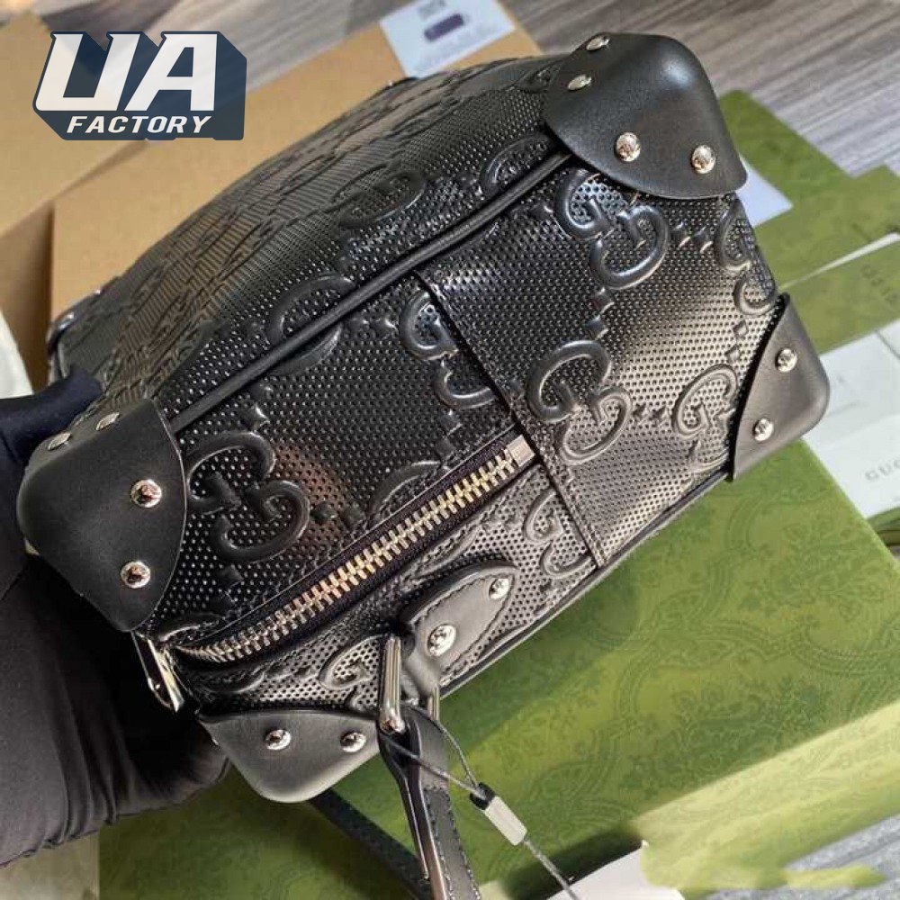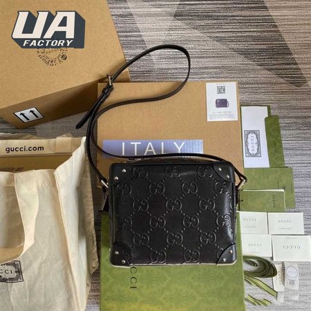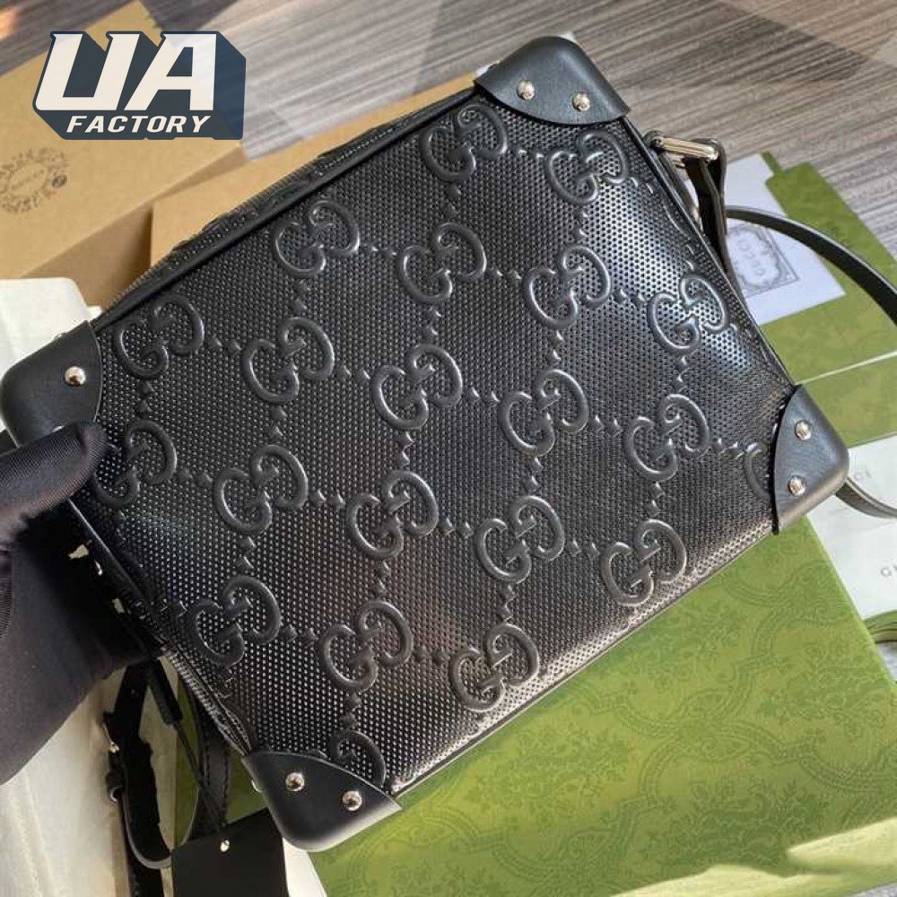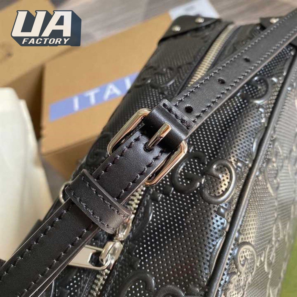 Gg Embossed Shoulder Bag In Black Leather GMB011