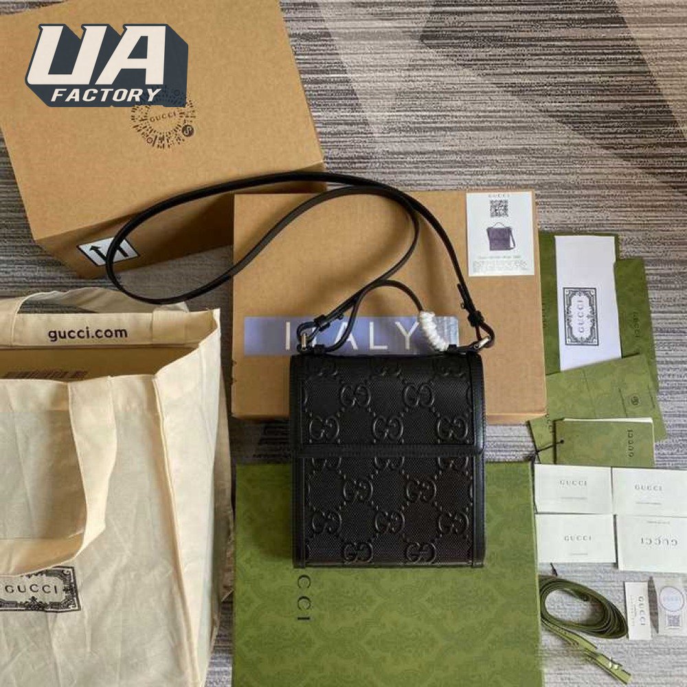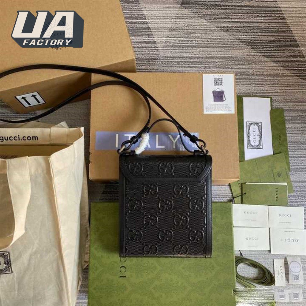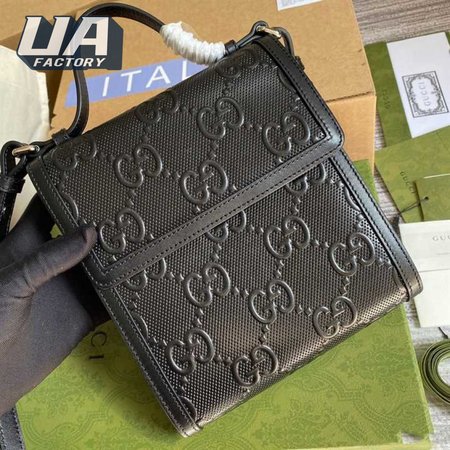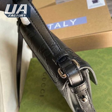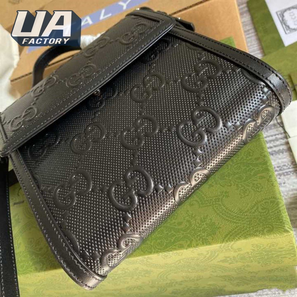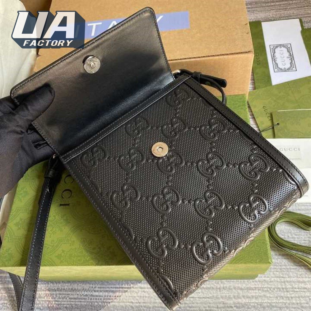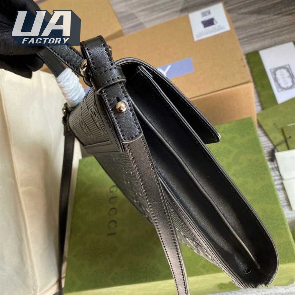 GG EMBOSSED MESSENGER BAG BLACK GG EMBOSSED LEATHER COTTON LINEN LINING - GBC07