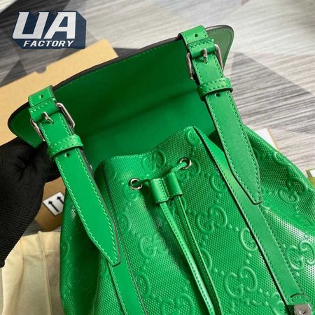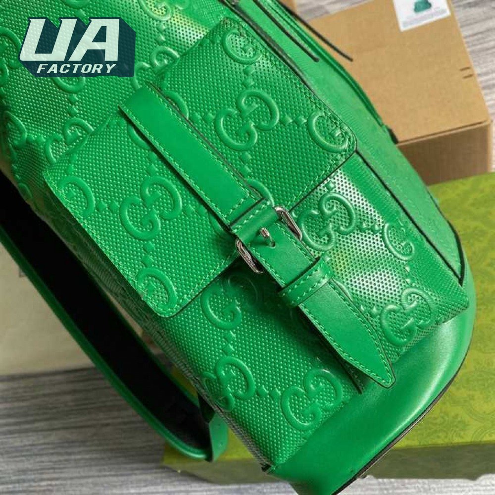 Gg Embossed Backpack In Green Leather GBP015