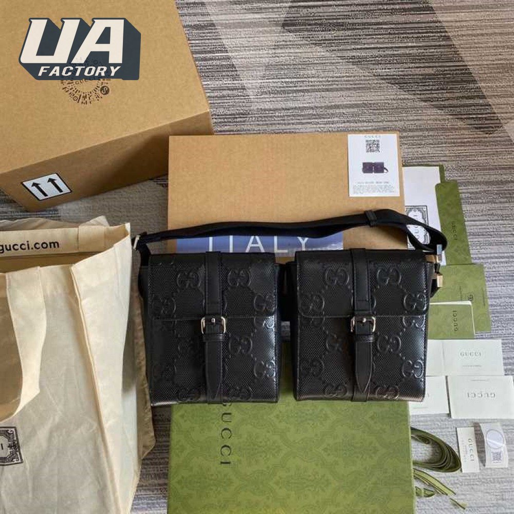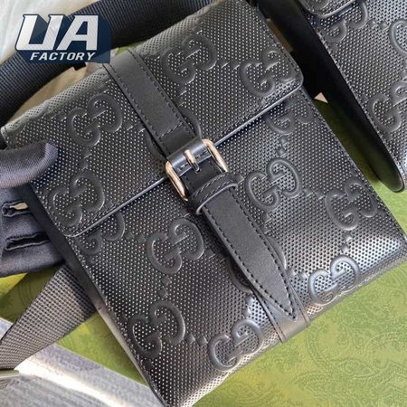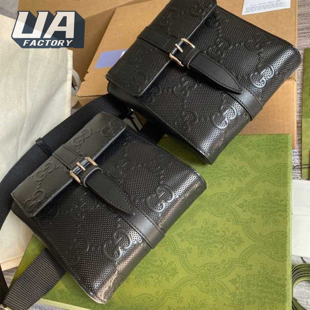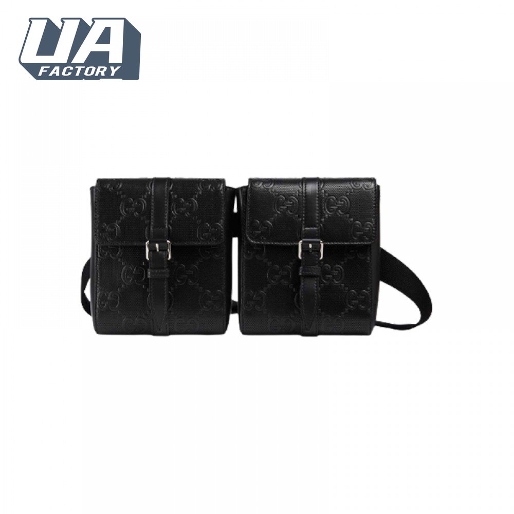 Gg Embossed Belt Bag Black Gg Embossed Leather Cotton Linen Lining GBB021