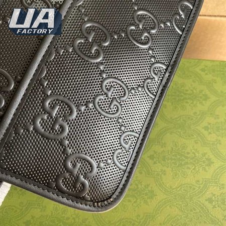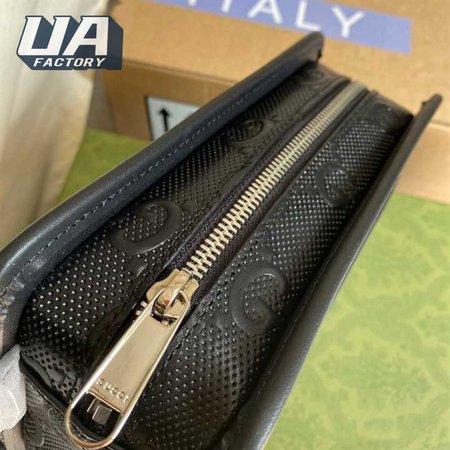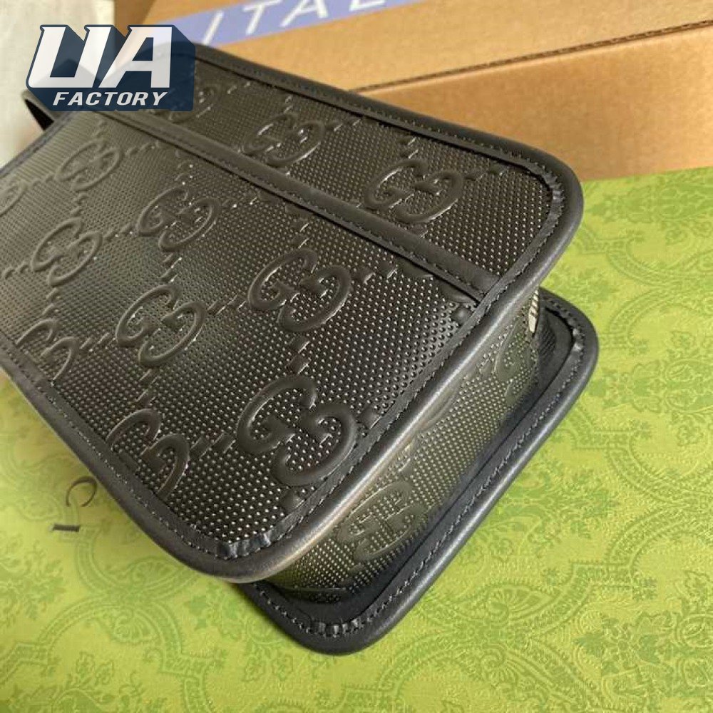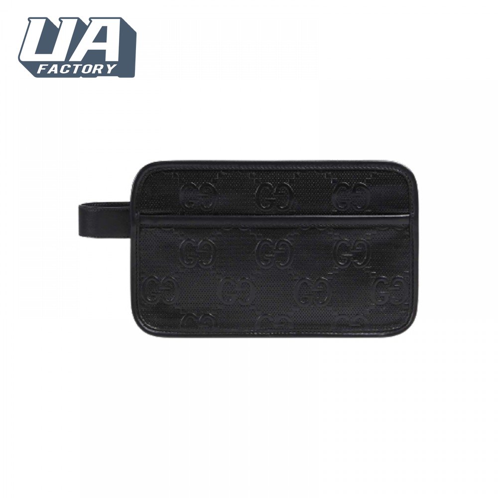 Gg Embossed Cosmetic Case Black Gg Embossed Leather Cotton Linen Lining GBB020